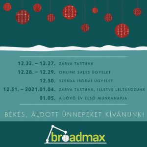 Ezúton tájékoztatjuk Önöket, hogy az év utolsó munkanapja cégünknél 2020.12.18. péntek.